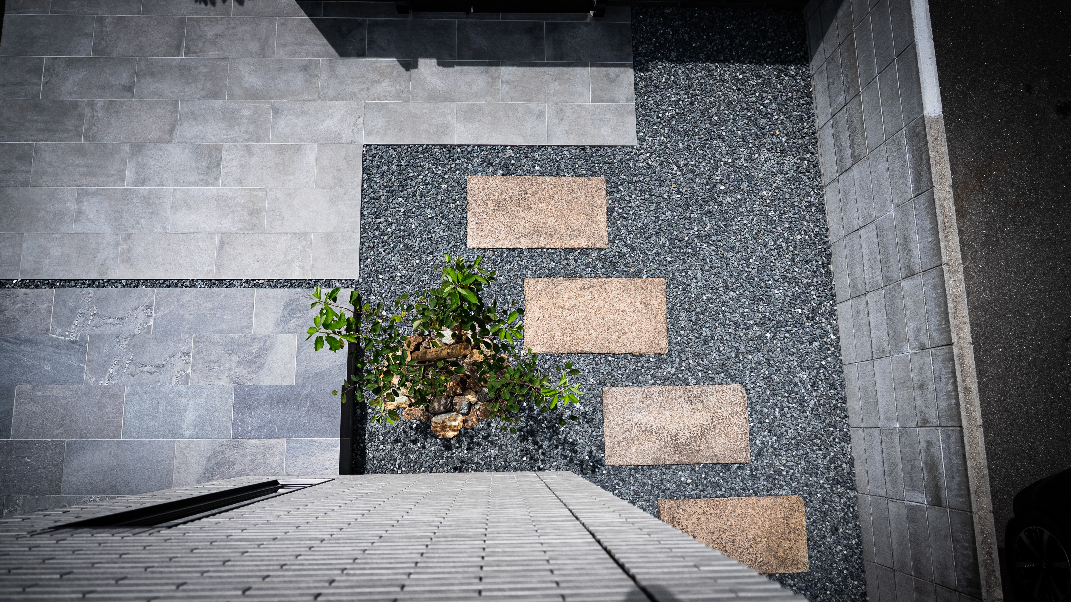 もともとのお家にあった「錆御影の板石」をそのまま再利用してお庭に。