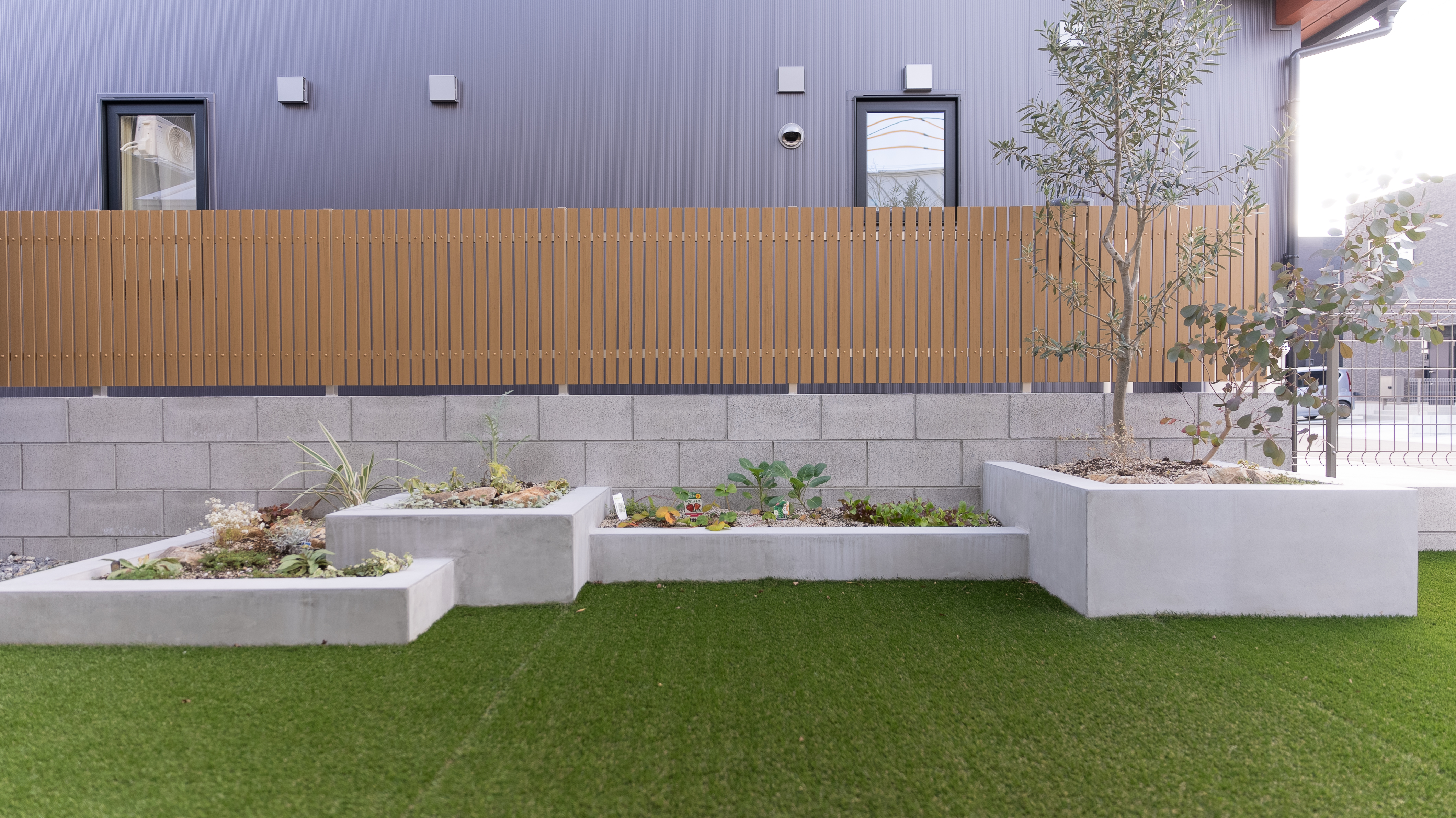 高木はユーカリとオリーブですが、お隣さんへの配慮も考え、できるだけ成長の緩やかな品種に。