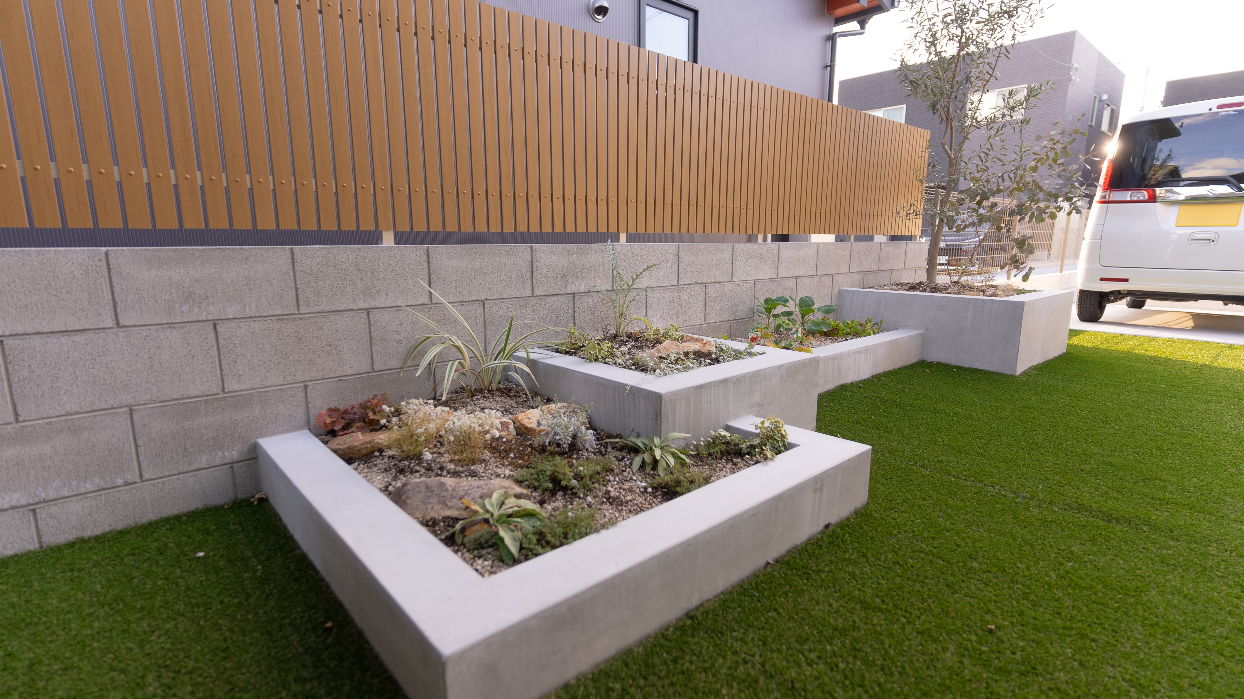 花壇はシンプルですが、サイズや高さで動きを表現しています☺
