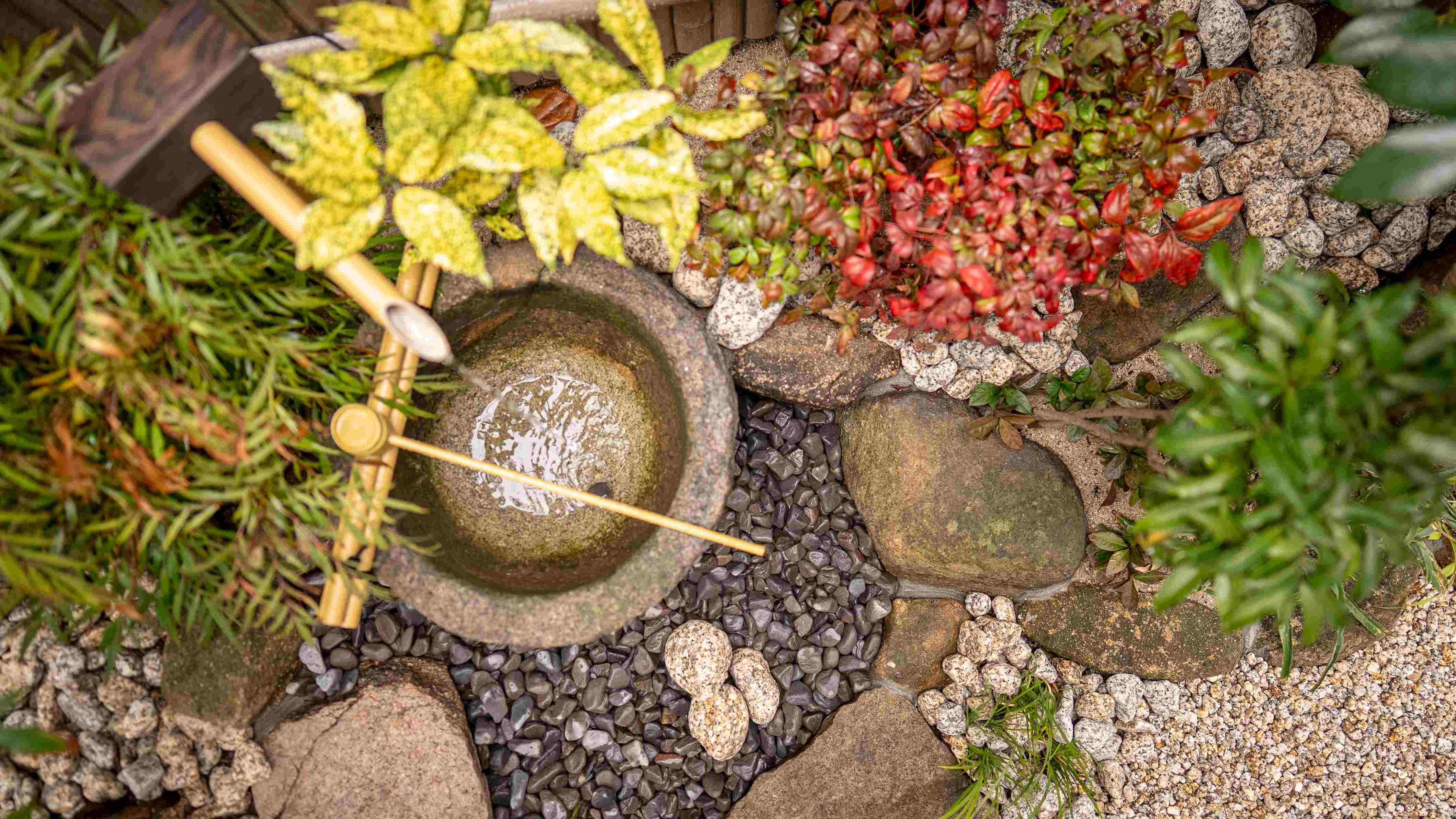時が経っているからこそ風合いを感じる石、灯篭、石臼、植栽はできる限り再利用しています。