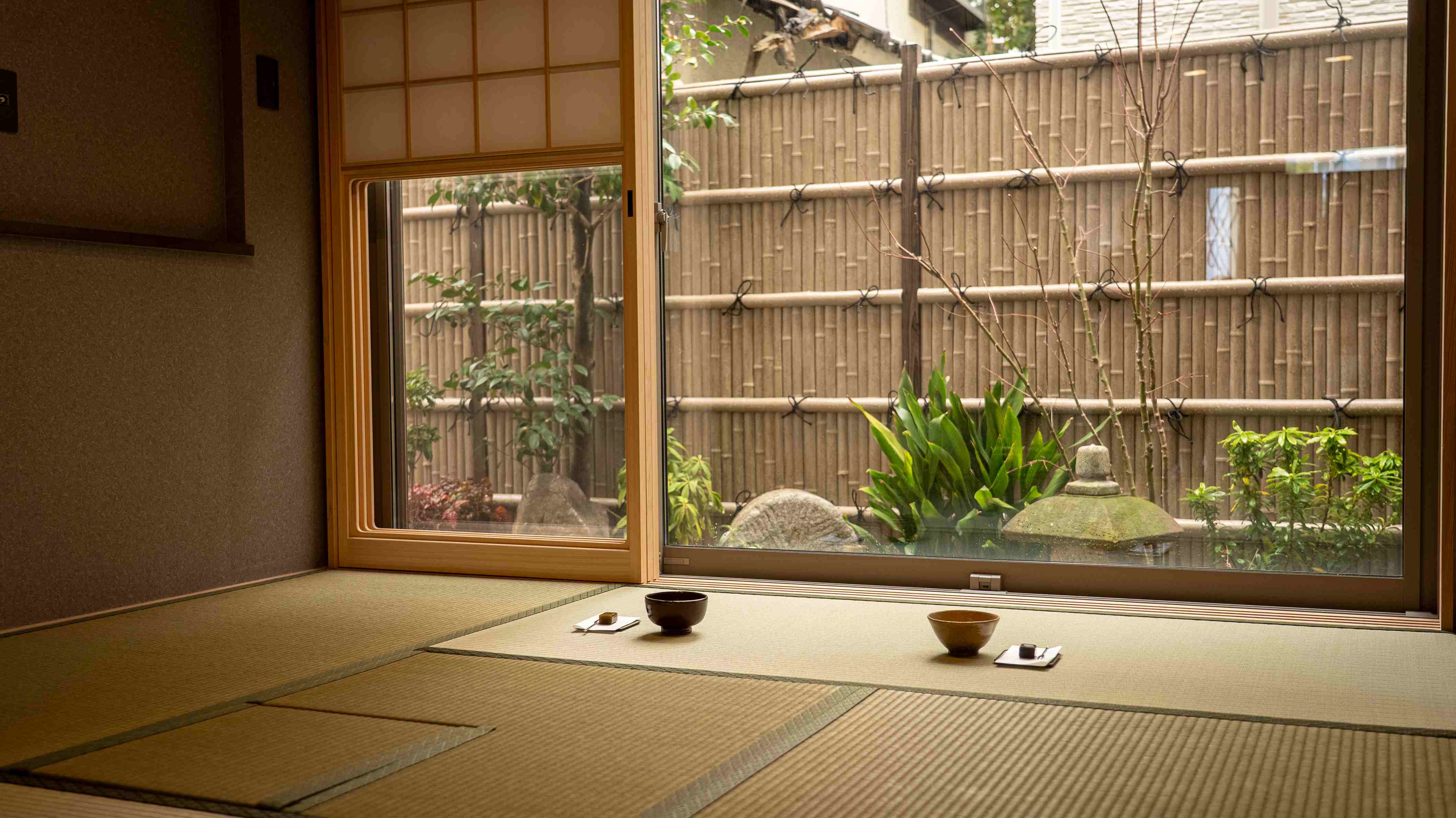 お茶をたてたり、一服しながら窓から見えるお庭の景色で四季を感じたり、心を落ち着ける時間。