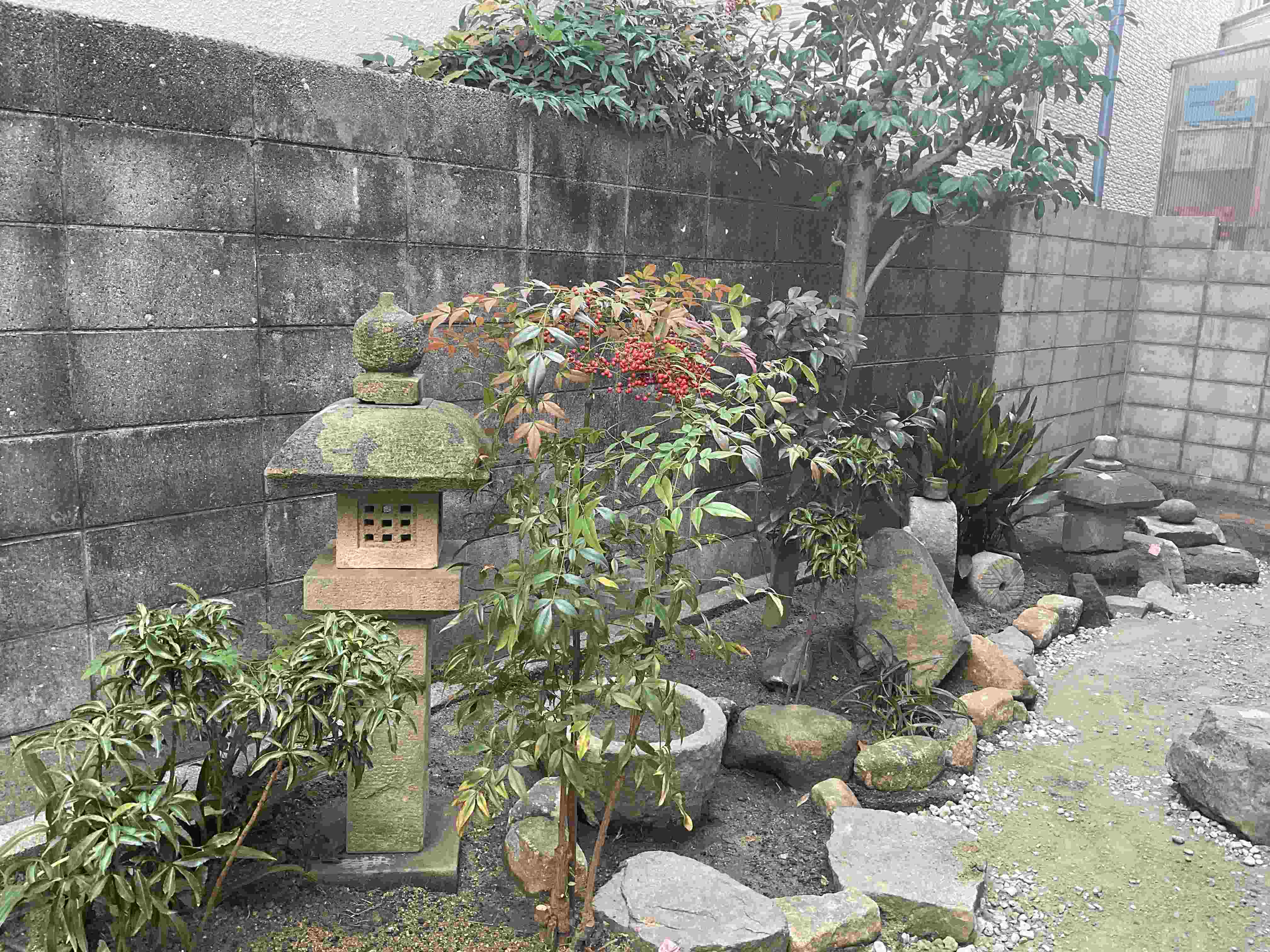 ・灯篭、石臼、植栽など残せるものを再利用して当時の景色を蘇らせたい