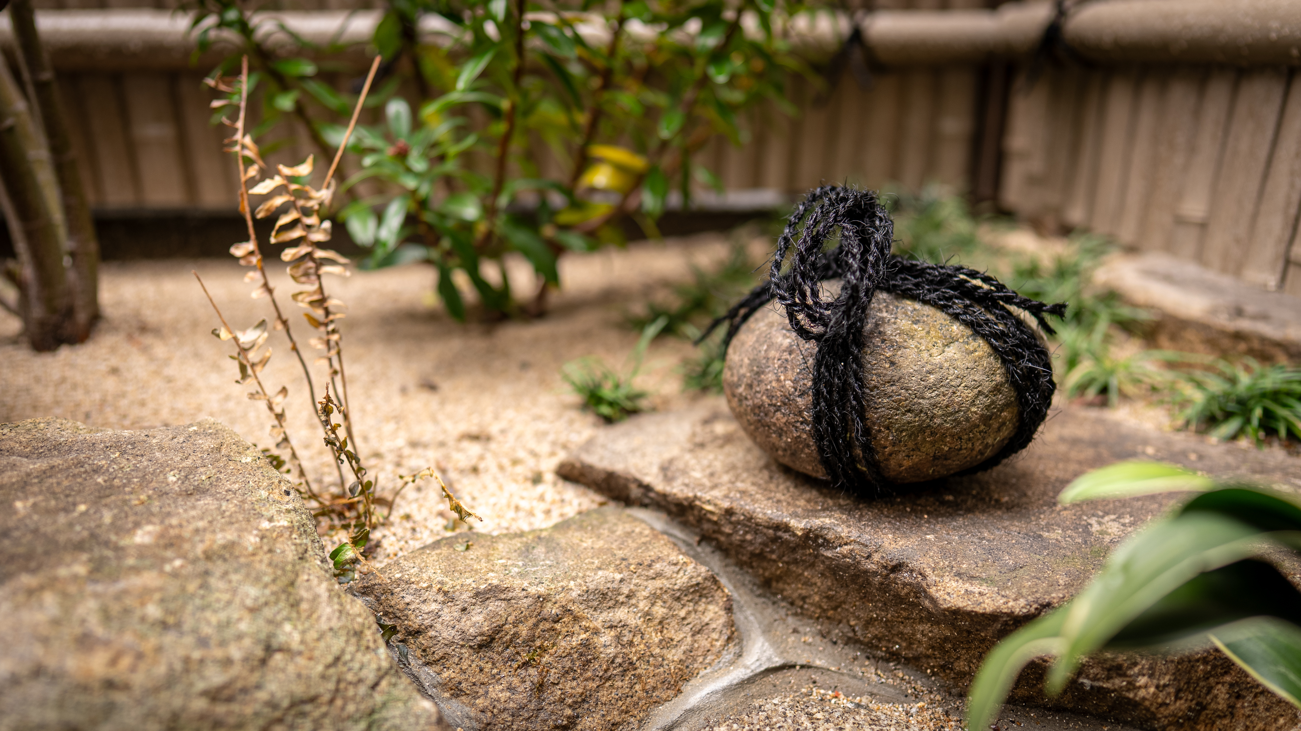 こちらの石は「関守石」というもので「これより先はご遠慮ください。」という境界の役目をしている石です。